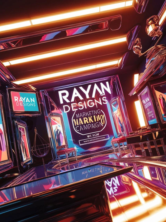 Imagem promocional da Rayan Designs destacando serviços de Marketing Digital. O design apresenta um fundo moderno com elementos gráficos representando SEO, campanhas pagas e branding digital. O texto principal enfatiza o impacto do marketing estratégico para aumentar a visibilidade da marca e gerar mais conversões.